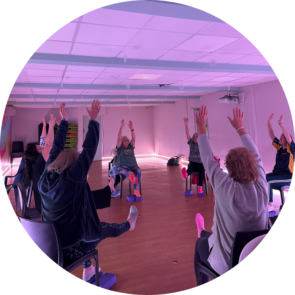Perfect for those with reduced mobility. Gentle seated stretches that improve circulation, coordination, and mental well-being.